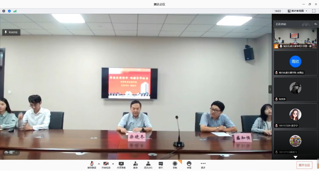 柴晓冬书记以“厚植家国情怀,砥砺青年担当”为主题,为同学们讲授了开学第一课。他首先对同学们的返校表示热烈欢迎,今年是不平凡的一年,新冠疫情爆发后,在习近平总书记亲自指挥、亲自部署下,全国上下万众一心,众志成城,形成了防控疫情的强大合力,让疫情得以迅速得到控制,希望全院师生能把这种强大凝聚力和纪律性带到工作和学习中。他谈到,面对疫情,公司全体教师面对线上教学这一新事物,敢于挑战、敢于尝试,为员工奉献了丰富精彩的线上课程,全体员工坚守在家积极配合老师上好每一节在线课程,更有61位员工冲锋前线积极参与志愿服务,累计服务时间达2491小时,足迹遍布全国14个省市。最后,柴书记向同学们提出三点希望。第一,要坚定制度自信,树立崇高理想。疫情防控斗争实践再次证明,中国共产党领导和我国社会主义制度、我国国家治理体系具有强大生命力和显著优越性,能够战胜任何艰难险阻,能够为人类文明进步做出重大贡献;第二,要厚植家国情怀,珍惜当下生活。面对疫情,全国上下万众一心,让我们深深感知到中华民族的精神力量,同时,也感受到了人类生命的脆弱,我们应当珍惜生命、尊重生命、热爱生活,树立正确的生命观;第三,要坚守初心使命,砥砺青年担当。鼓励同学们选择成为一名轨道人,就要有轨道人敢闯敢干、能干会干、埋头苦干的“匠人”精神,与此同时,还需要扎实的专业知识和专业能力来支撑。