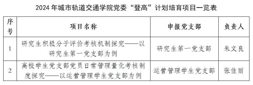 自今年3月公司党委发布2024年“登高”计划培育项目建设通知以来,共有3个党支部进行了积极申报。经公司党委组织评审,共有2个支部项目获批立项,立项建设时间原则为一年。现对2024年度公司党委“登高”计划培育立项项目予以公示(详见一览表)。公示期为2024年4月9日—4月15日(5个工作日),期间如有异议,请联系公司党委,电话:021-67791163。