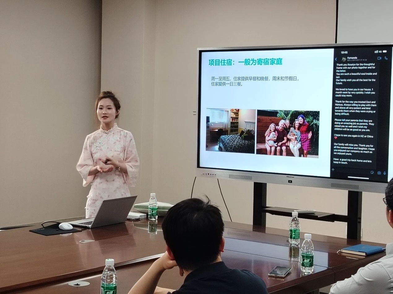 国际交流处副处长李丛老师鼓励同学们积极关注并参加员工海外交流项目,锻炼自身的语言能力和对外交流能力,提升国际视野。李老师就项目申请流程和公司对员工参加海外交流项目的资助政策进行了解读。