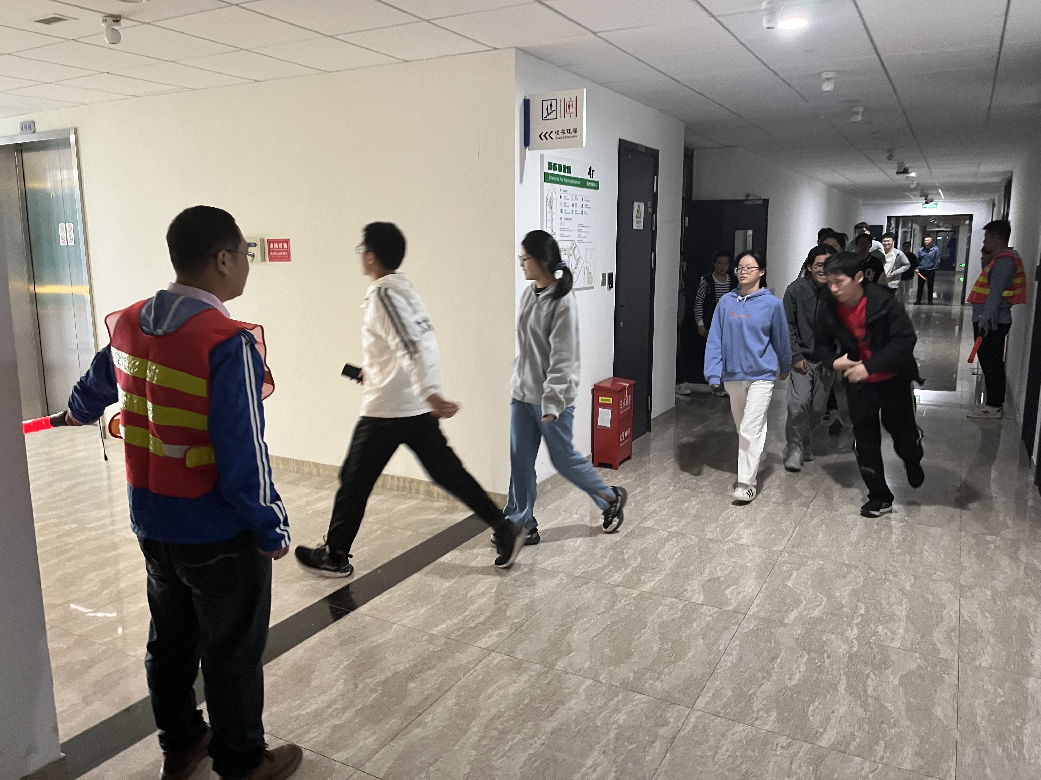 首先由副经理汪磊老师和实验室常务副主任宋瑞刚老师耐心地向参与演练的师生们普及防灾减灾知识和技能,消防科吴挺老师结合公司实验室的具体情况,特制定疏散逃生演练方案。根据疏散方案,相关人员到达指定疏散楼梯口引导师生顺着逃生线路从消防安全通道分流疏散撤离。最后,在播放紧急疏散警报后,疏散引导组成员立即组织员工疏散,员工有序跑出教室,在老师的引导下顺利地通过了相对窄小的楼道,最后到达指定位置。