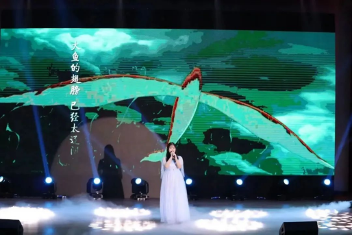 晚会在歌舞剧《阳光彩虹小白马》中拉开序幕,台上同学们活泼的舞蹈和欢快的背景乐带动场内的气氛,感染了在场的各位观众;说唱表演《我想》,激情的节奏更是引得大家的欢呼;曹奕黄同学表演的吉他弹唱《突然的自我》余音绕梁,让大家感到意犹未尽;段媛媛演唱的歌曲《大鱼》悦耳动听,歌声婉转高昂仿佛将我们带入另一个世界;伴随着古风曲,由任芷含同学表演独舞《兰亭序》翩翩起舞,舞姿柔美,令在场同学们大饱眼福。