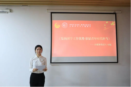 公司新媒体部门负责人应悦进行了《发扬团学工作优势,彰显青年时代担当》主题宣讲。她介绍了公司近一年在思想教育、志愿服务、社会实践、创新创业、文化建设五方面开展的团学工作与所获荣誉,积极践行党的二十大精神的重要举措,打造多元化、立体化员工会工作体系,轨院学子也将凝心聚力共促团学创新发展,筑牢信仰之基彰显青年担当。