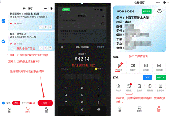 4.为避免开学后无教材使用,请各位同学抓紧时间征订,开学后将不再统一征订教材。由于教材订购的特殊性,系统关闭(1月12日 18:00)后无特殊情况平台将不予退款,谢谢配合。