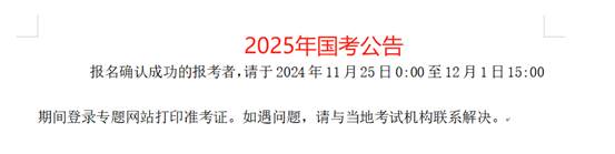 网上打印准考证:2024年11月25日0:00至12月1日15:00期间打印准考证。