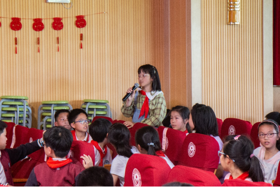 在讲到各位共产党先驱的时候,刘航宇同学的神情变得庄重起来,但面对小朋友们的时候语气又十分的温柔:“革命先辈们都有着同样优秀的元素——博览群书。所以我们的同学们应当多看书、多看报。”