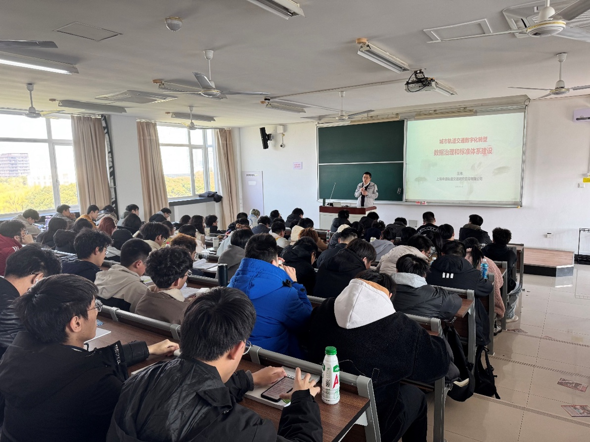 为进一步深化产教融合,提升员工专业素养,轨道交通信号与控制专业于3月18日在该专业的核心专业课“车站信号自动控制技术”课堂上,成功邀请了上海申通轨道交通研究咨询有限公司副总经理王伟为本专业大三员工开展“企业专家进课堂”活动,为员工做了一场题为“数据治理与标准体系建设”的精彩报告。