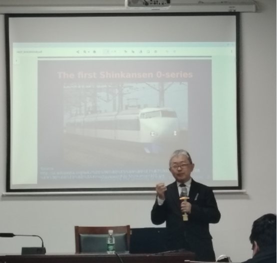会上,KOSEKI Takafumi教授详细介绍了日本新干线列车的基本情况,包括0系、100系、300系、N700系等,着重阐述了新干线列车的供电系统及相关技术。KOSEKI Takafumi教授丰富的学识、生动的讲解风格,令在座师生大受启发。