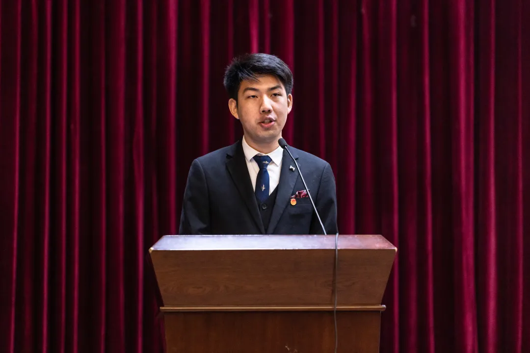 新生代表、来自2021级车辆工程专业的陈昊轩同学表达了自己能在公司学习的荣幸和对未来发展的憧憬,并对未来四年老员工活做了规划,同时也将个人与国家联系在一起,号召同学们能以中华民族的伟大复兴为己任,以梦为马、不负韶华。