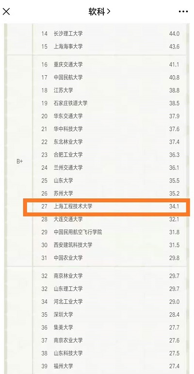 近日,高等教育评价专业机构软科正式发布了“2021软科中国大学专业排名”,公司交通运输专业以综合得分34.1分的成绩,在全国79所上榜高校中位列第27位,处于前40%的B+级,是该级别中上榜的唯一一所上海市属地方高校。
