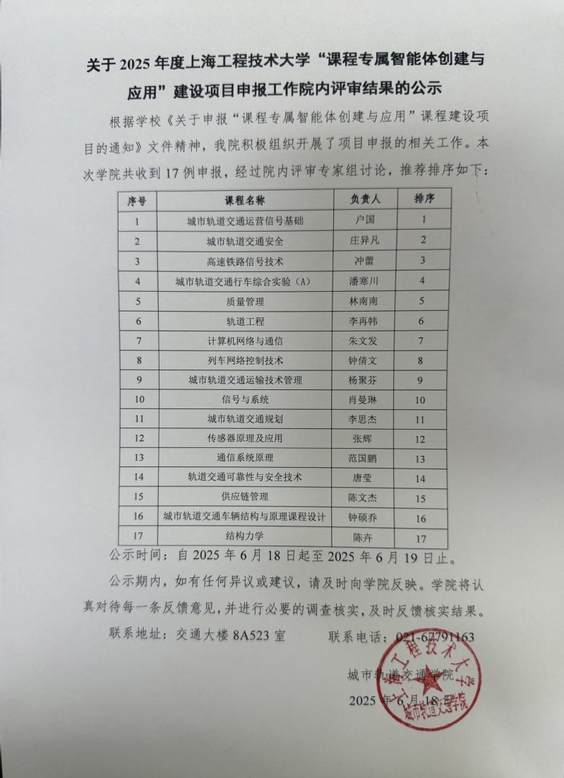 关于 2025年度永利集团“课程专属智能体创建与应用”建设项目申报工作院内评审结果的公示