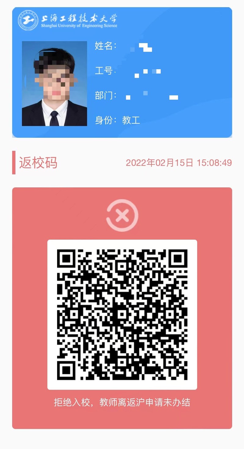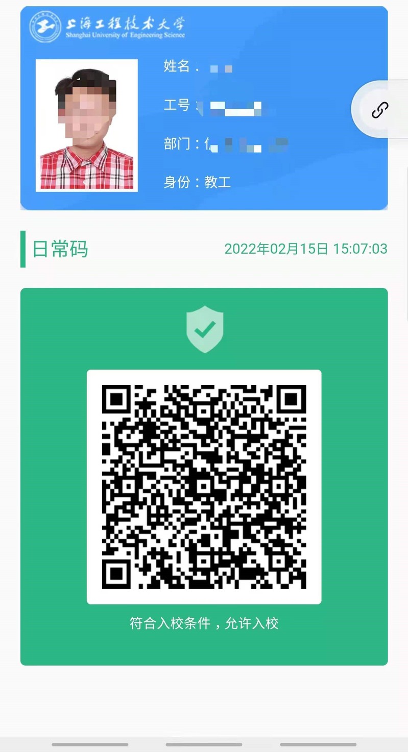 当完成所有申报和流程办结后,“校园码”将显示为绿色,所有教职工只要刷校园卡或人脸识别即可进校;如若“校园码”显示红色,人行闸机或人脸识别功能将无法通过,系统拒绝进校。