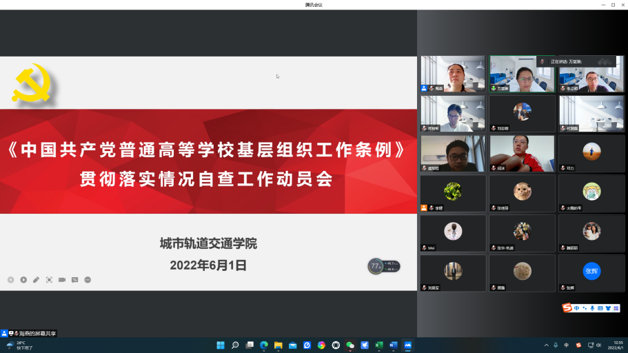 6月1日,公司党委线上召开了《中国共产党普通高等公司基层组织工作条例》贯彻落实情况自查工作动员会。公司党政领导班子、各系室负责人、全体党支部书记等出席会议。本次会议由公司党委书记万慧琳主持。