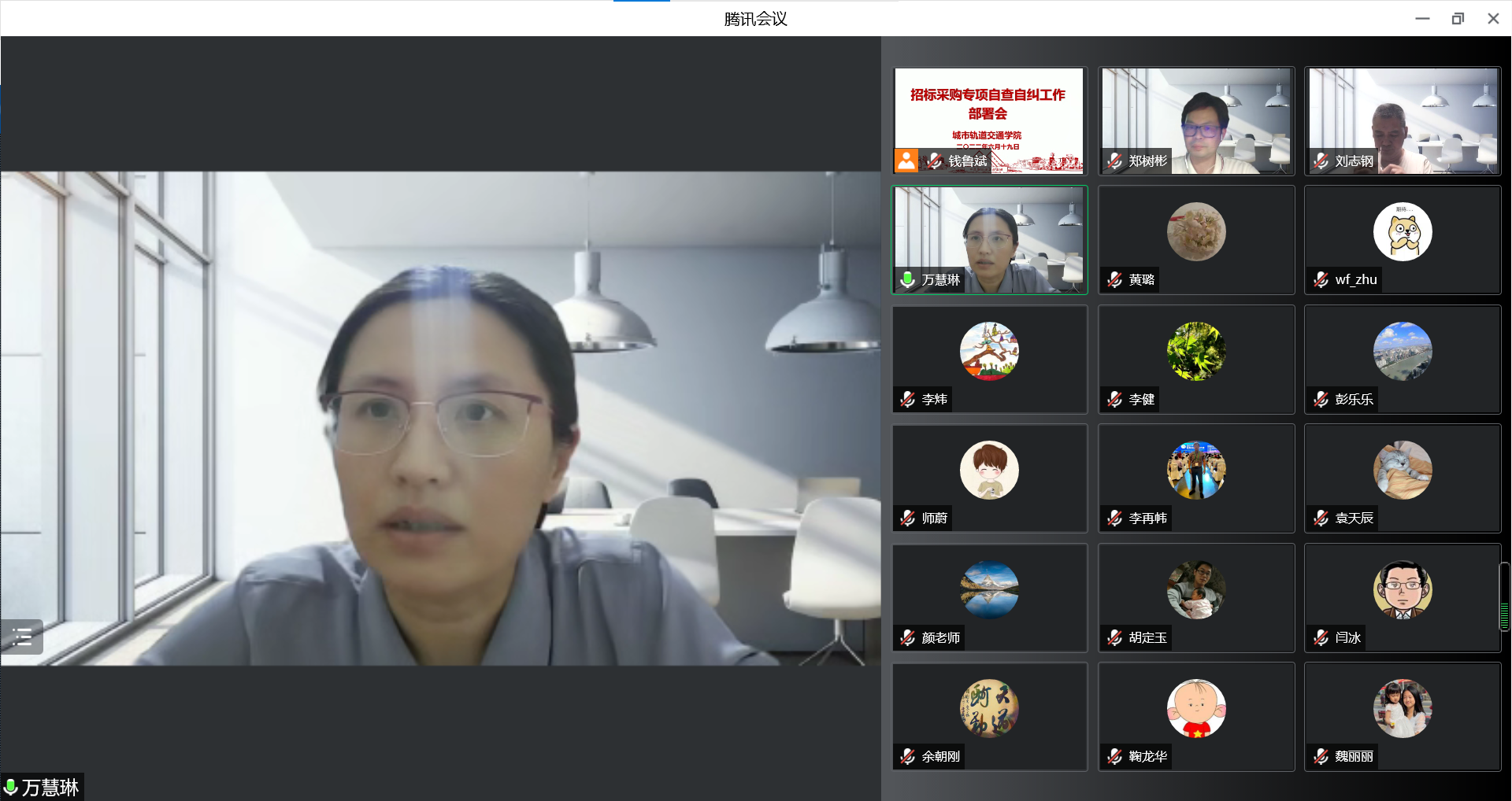 万慧琳书记强调,招标采购专项自查自纠工作是落实巡视回头看整改任务的重要专项工作。全体与会人员务必高度重视,提高政治站位,切实增强自查自纠的政治自觉、思想自觉和行动自觉。针对各自分管领域、负责领域的采购项目要逐一梳理,认真排查存在问题,对排查出的问题要仔细分析原因,明确整改举措,整改责任人和整改时限,确保整改取得实效。