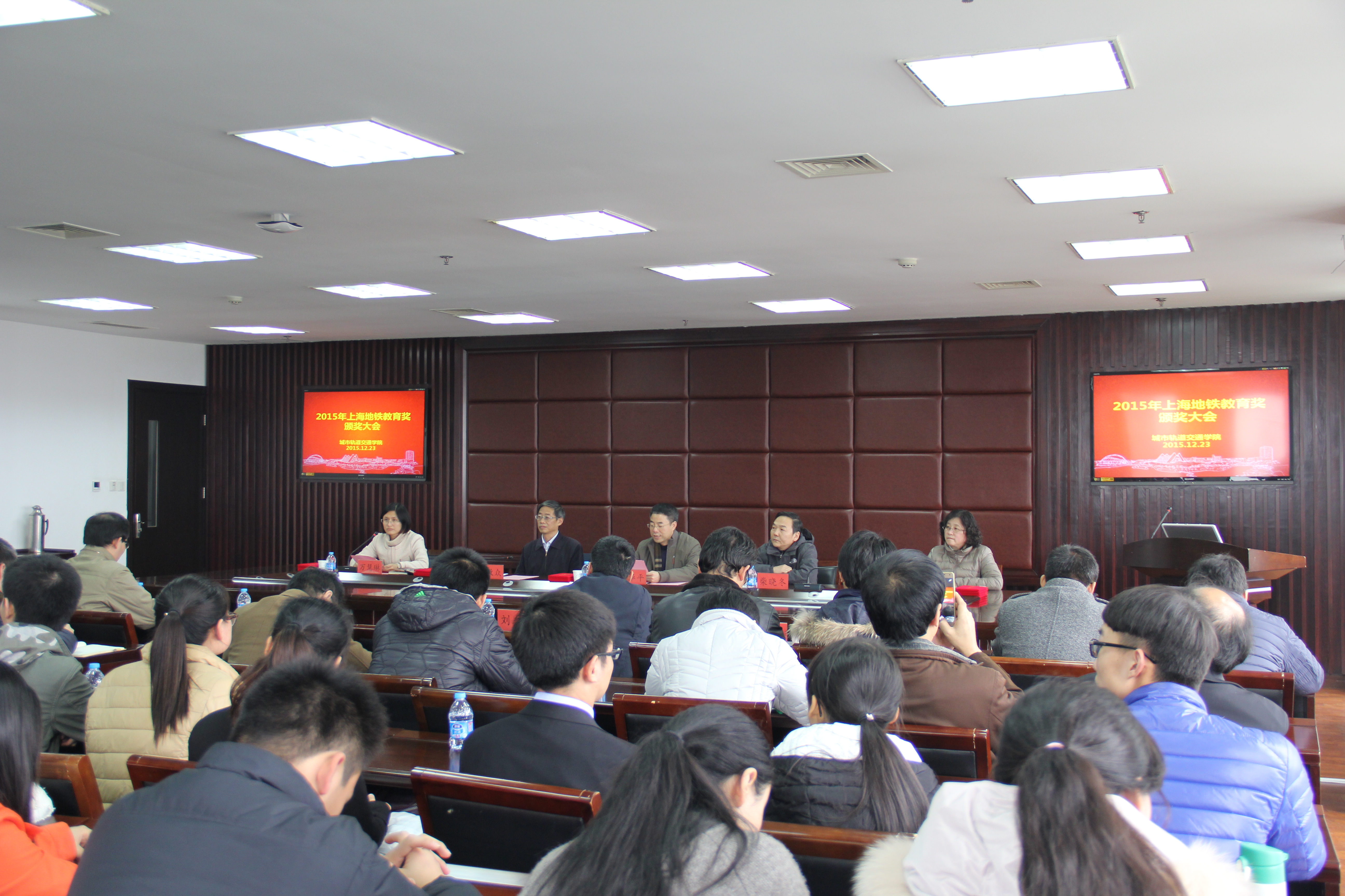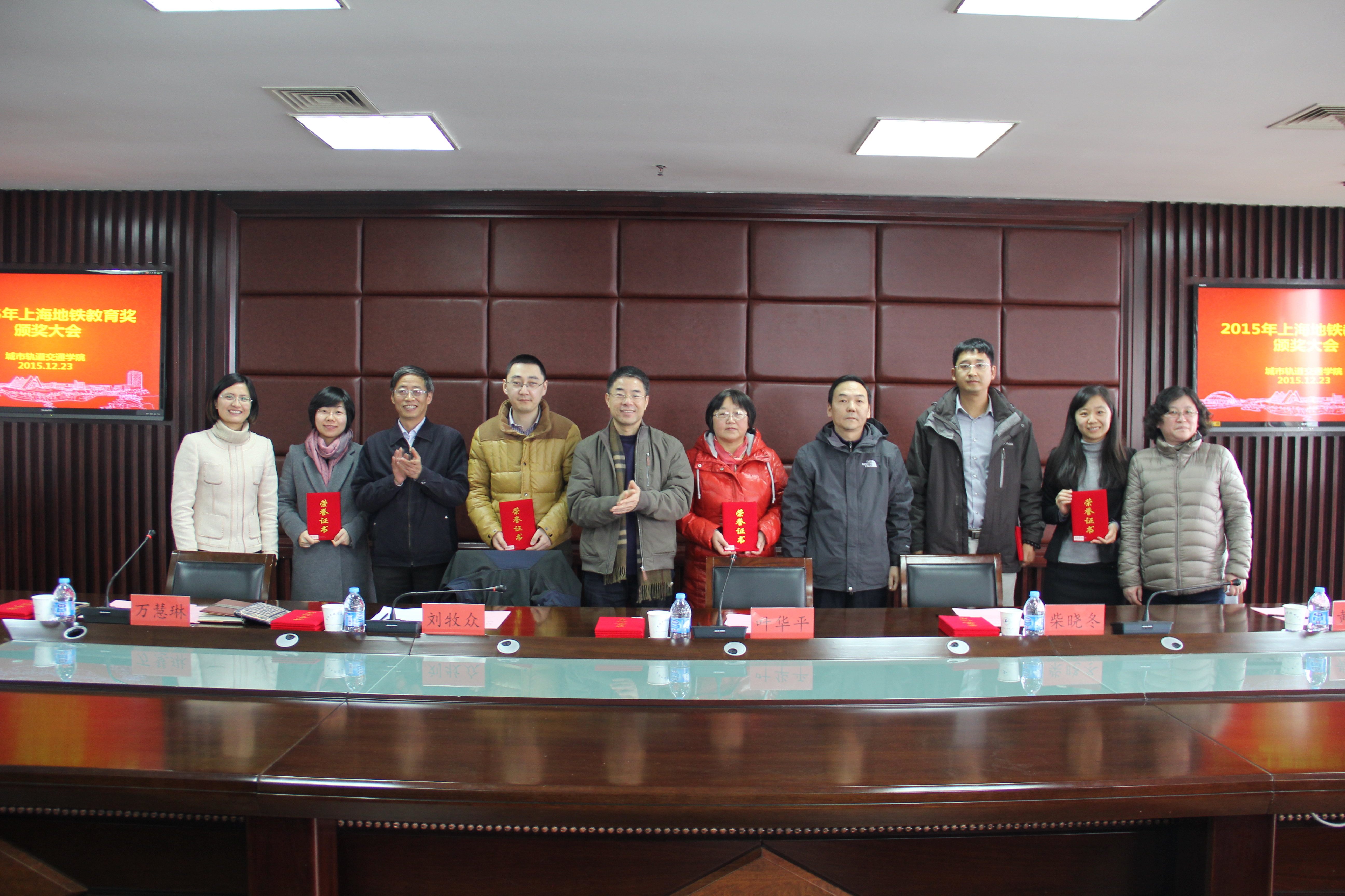 12月23日,3044永利集团在行政楼506召开2015年上海地铁教育奖颁奖大会,上海申通地铁集团有限公司轨道交通培训中心主任叶华平、员工处副处长黄文洁、3044永利集团经理柴晓冬、党总支书记刘牧众、副经理刘志钢、方宇、何越磊,获奖师生代表等参加了会议。大会由公司党总支副书记万慧琳主持。