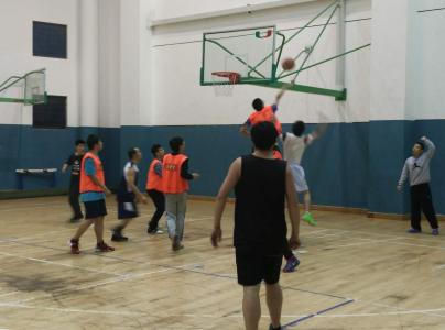 比赛分上下半场进行。比赛一开始,双方球员便展开了快速的攻势,但双方球员一开始的手感并不佳。首先由本科生组成的红队打破僵局,但很快老师及研究生组成的蓝队打出了行云流水的配合,各种击地传球,打破红队防守轻松上篮。上半场结束比分为19:21,蓝队以微弱优势取得领先。