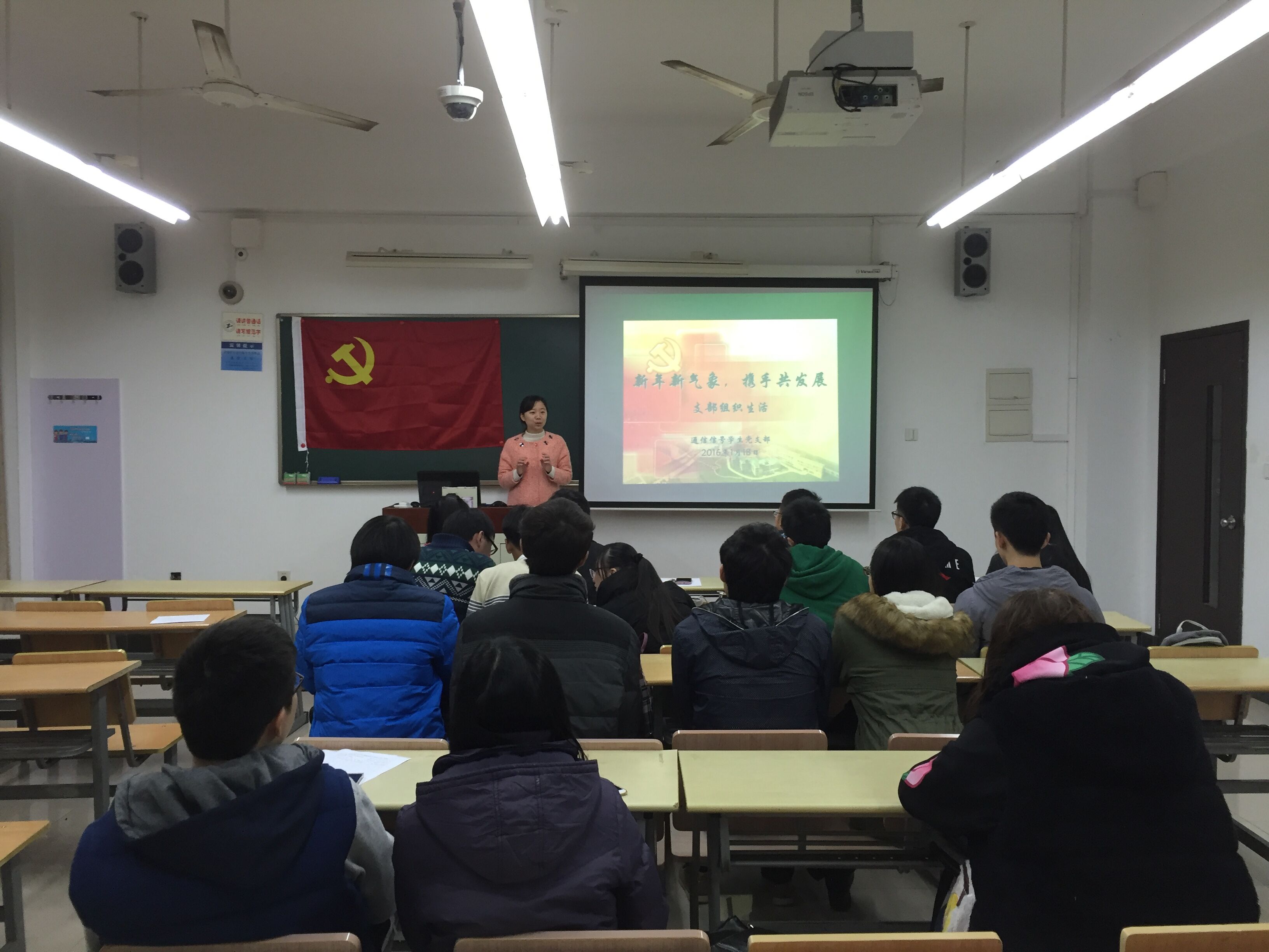 1月12日下午,通信信号员工党支部在教学楼B215进行一月份的第一次也是本学期的最后一次支部组织生活,本次支部组织生活以“新年新气象,携手共发展”为主题。本次支部生活由王恩鸿同志主持,许斌城同志负责记录。