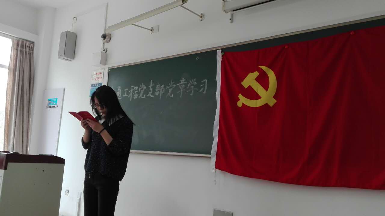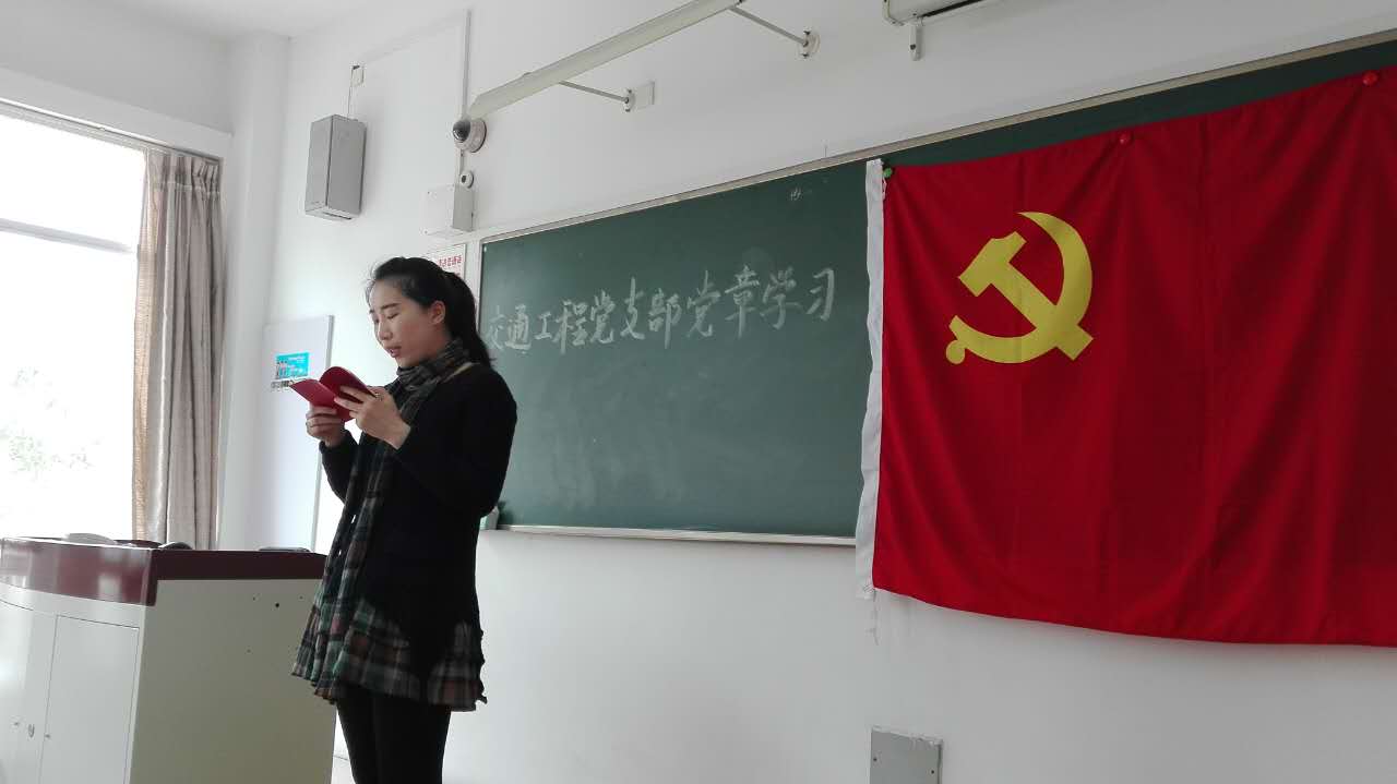 为积极响应习近平总书记“两学一做”的号召,深入学习贯彻《中国共产党员章程》的基本精神,完善支部制度,进一步解决支部成员在思想、组织、作风、纪律等方面存在的问题,保持党员的先进性和纯洁性,交通工程党支部近期开展党章学习专项活动。