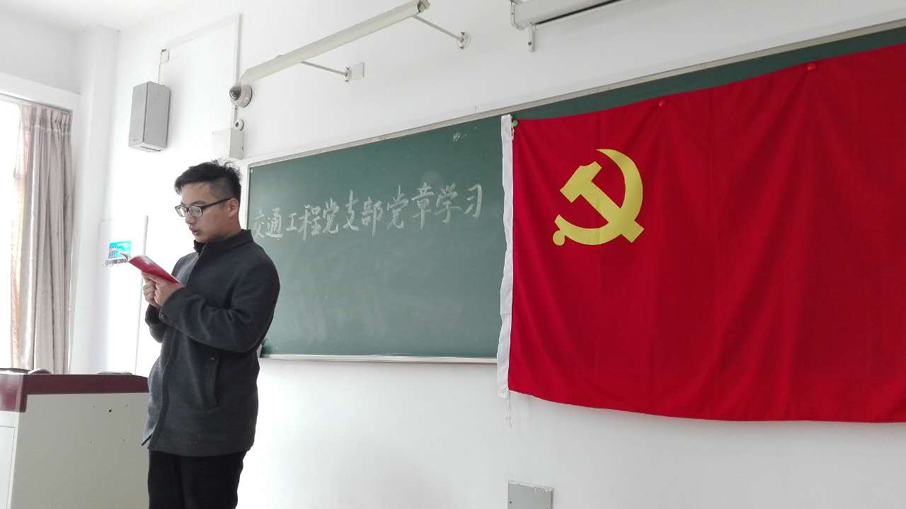3月30日,交通工程党支部在教学楼C203召开党章学习讨论会,以尊崇党章、遵守党规为学习中心,教育引导支部内党员自觉按照党员章程规范言行,进一步坚定理想信念,提高党性觉悟,在学习和生活中起到党员先锋模范作用。此次活动中,采取了每人读党章集中学习的方式,增加了大家对党章的理解与领悟,明悟自己肩上的责任。通过开展学习活动,交通工程党支部将进一步抓好党章学习工作,组织全支部党员认真研读党章,撰写学习心得,领会深刻内涵,掌握主要精髓,按照党章要求不断加强自身党性修养和党性锻炼的自觉性,人人争做合格党员。(交通工程党支部史桐瑜)