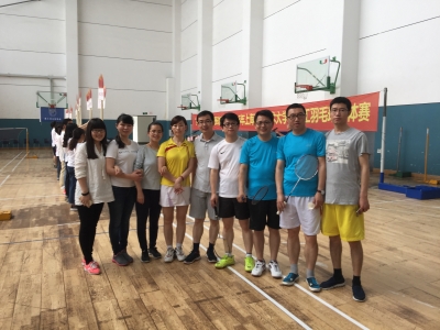 为进一步落实全民健身计划,丰富公司广大教工业余文化生活,公司组织教工代表积极参加于5月6日下午在体育馆二楼训练馆举行的2016年校教职工羽毛球团体赛。我们这支队伍由六名正式选手、两名替补选手和一名领队共九人组成, 大家均以饱满的精神状态出现在比赛现场。我们很荣幸地对阵校体育教学部教工,大家都以饱满热情从容参赛,赛出了风格和水平。(李健)