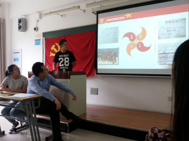 倪佳华同志上台演示自己制作的ppt,在ppt中对自己一年预备期内的工作、生活、思想、学习等情况做出了总结,详细描述了自己在转正期间参加的各种活动,起到了党员的积极带头作用。之后,又分析了自己的不足之处,表明成为一名正式党员后,将不断地改善自身、提升自我。党内同志认真倾听,并给予诚恳建议。会议气氛轻松、和谐,充分体现了党内的民主性,增强了党内同志的交流。此次会议在轻松的氛围中圆满结束。