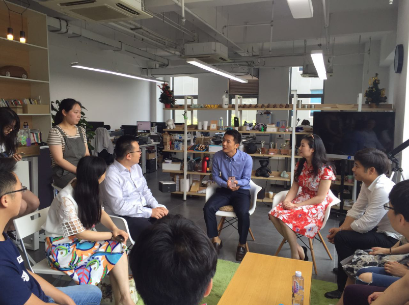 沪江网联合创始人兼CFO、蚂蚁计划发起人、团市委副书记于杰热情地迎接了师生们的到来,向大家介绍了蚂蚁创客空间的由来。 “我们希望营造一种轻松无障碍的交流空间,向所有创业者开放。有困惑时过来坐坐,会有朋友为你出谋划策;有好的创意时,会有配套资源帮你少走弯路。”于杰告诉大家,蚂蚁创客为创业者而生,一站式解决创业难题,正是蚂蚁计划存在的理由。他指着墙上三位合伙人与韩正书记的合影说:“韩正书记也二度为蚂蚁计划点赞,并鼓励我们继续开拓互联网+教育X产业的推广模式。”当员工创业者代表林家梓同学向于总赠送了自己的创业产品时,他高兴地一再嘱咐同学们,在创业路上有任何困难都可以来到蚂蚁创客空间,寻求帮助。有着600平方米办公场地的蚂蚁创客空间,吸引了“互元基金”3亿元和“蚂蚁雄兵天使基金”5000万元的投资,发挥了沪江网党委及蚂蚁创客空间联合党支部政治引领作用,突出创业孵化、创业融资、创业培训、党群服务等多元功能,为创客创业提供文化、创意、场地、资金等综合服务。