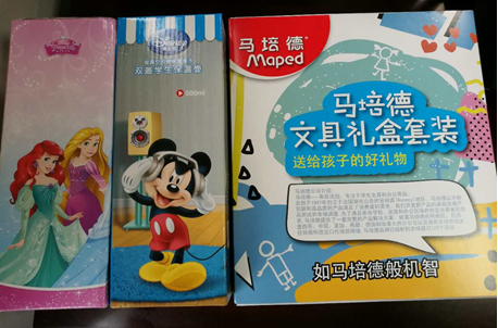 考虑宝贝们的兴趣和爱好,为部分教职工子女赠送了精致、多样的绘画文具套装、玩具、绘本、水杯等礼品。