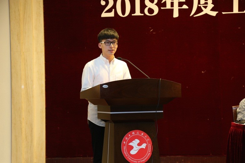 获奖员工代表2015级运营管理专业秦嘉杰同学结合自身投入地铁志愿者与“蓝精灵”站务助理服务队的经历,提到自己参与到有关地铁方面的社会实践,能够很好地将学术知识与具体实践相结合,对提升自我很有裨益。