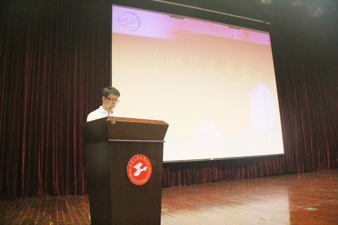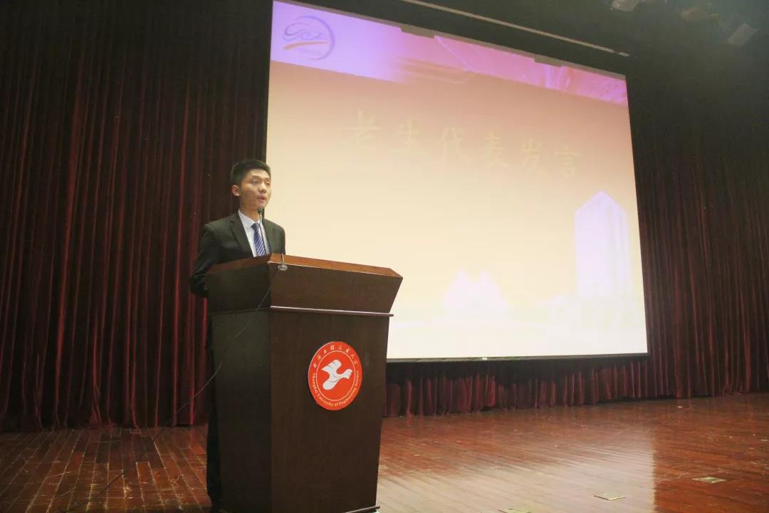大会发言阶段,铁道工程系汪磊副教授、院员工会主席张嘉兴、交通运输专业蒋征奥分别代表导师、老生和新生进行大会交流发言。