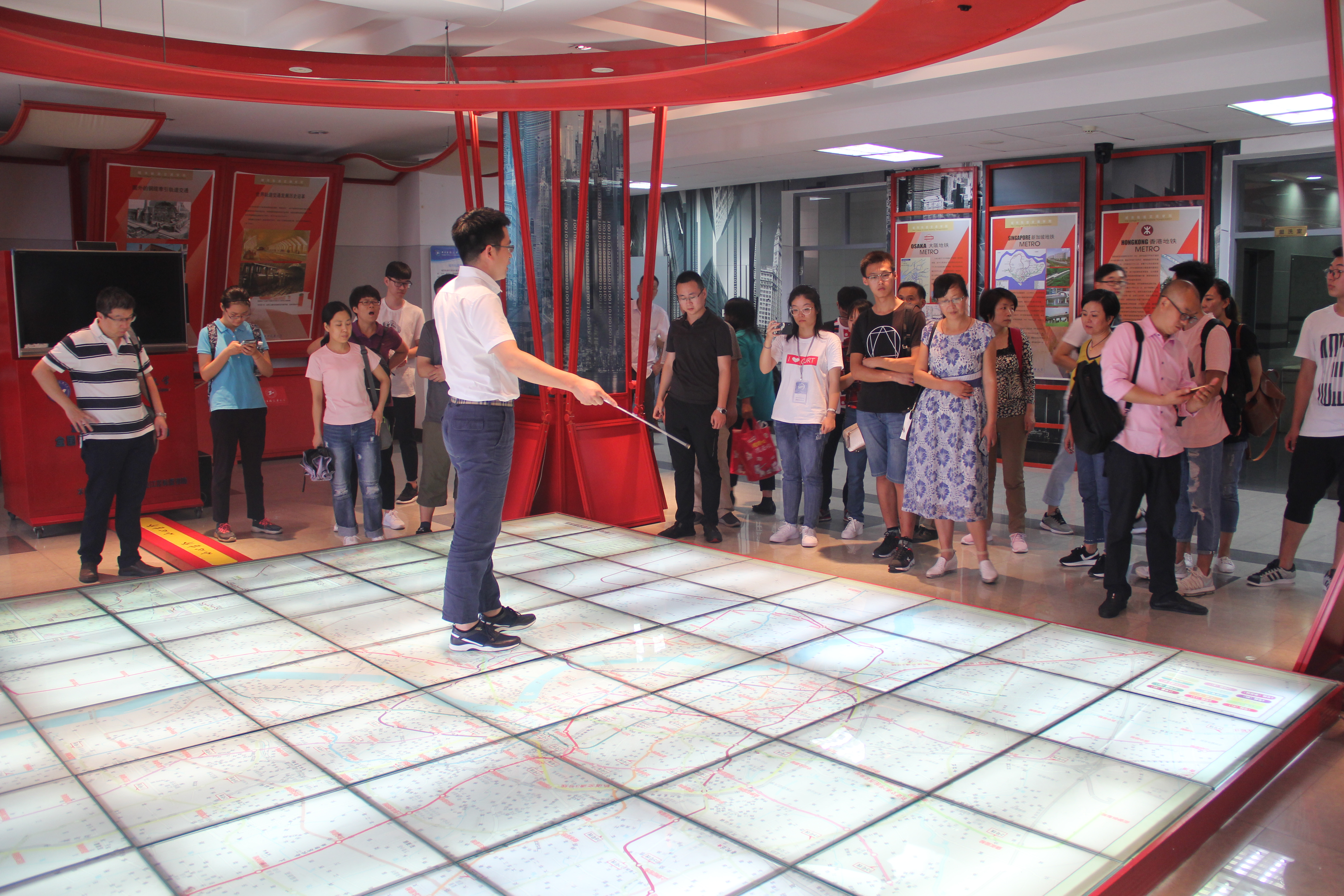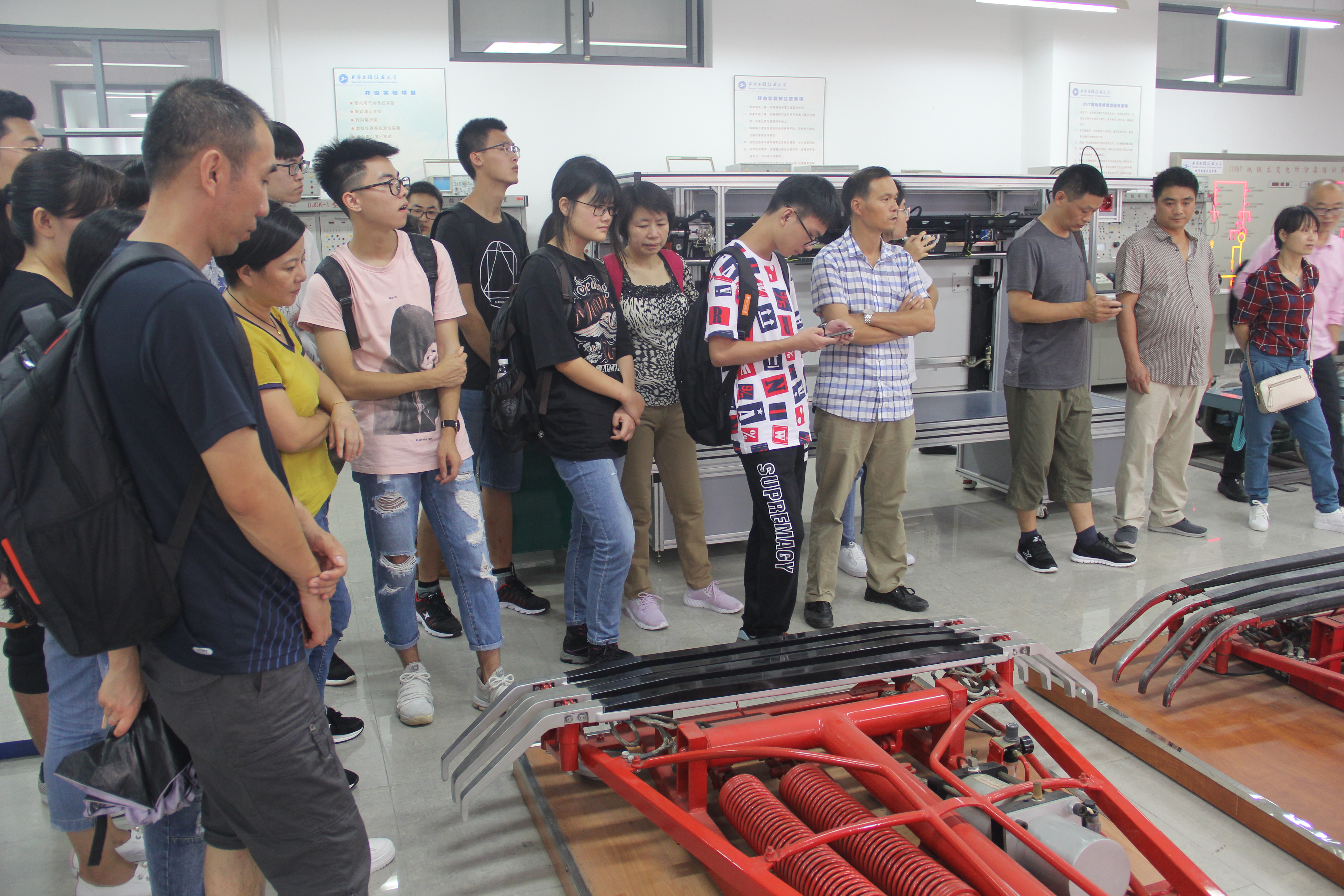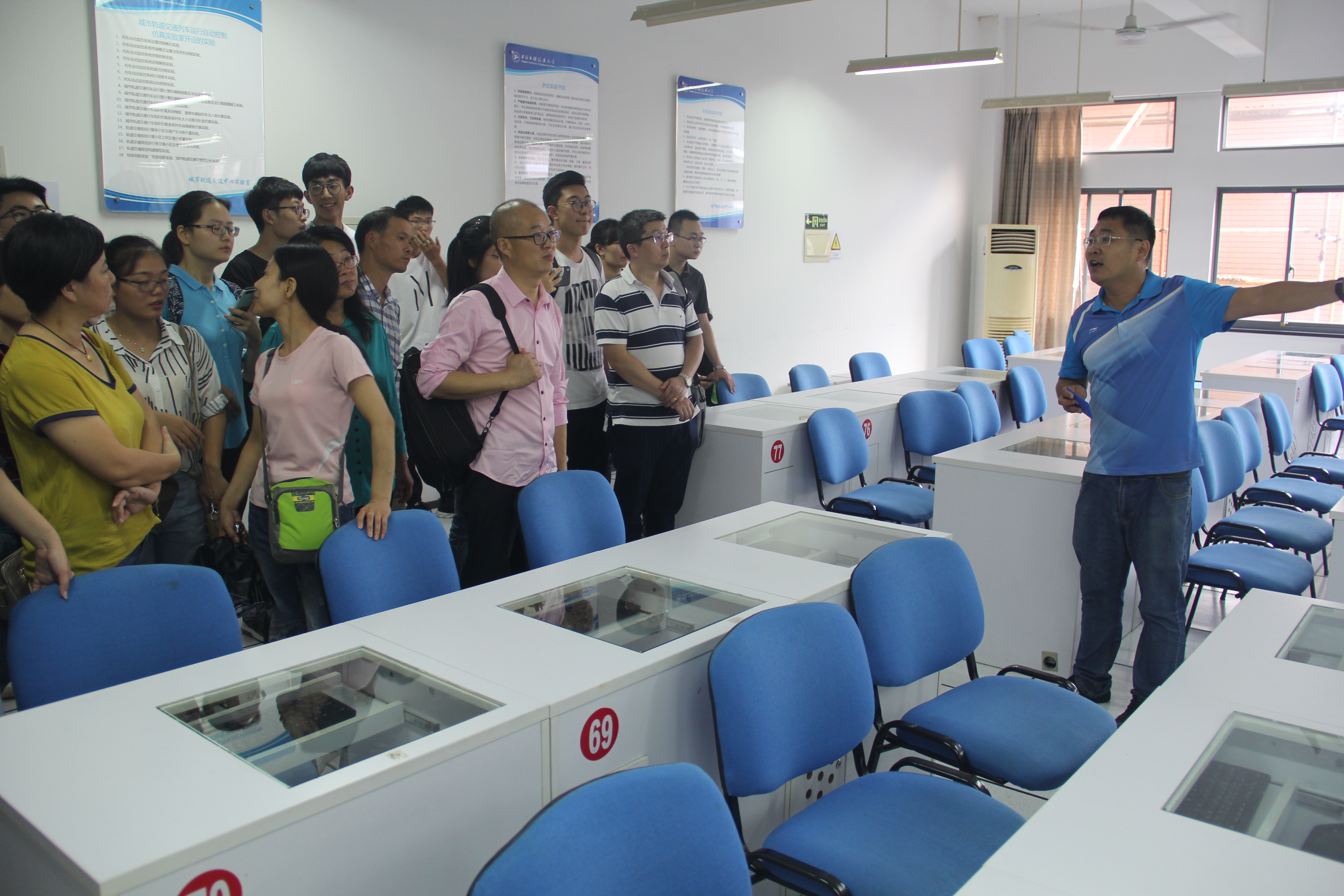 最后,由实验室老师宋瑞刚、户国带领家长及员工前往公司实验室进行参观。开放参观的实验室包含列车自动控制仿真实验室、列车模拟驾驶实验室、车辆结构综合实验室、城市轨道交通技术展示馆四大实验室。通过实验室老师专业的介绍及引导,员工能够初步收获专业知识,对其之后详细的学习大有裨益。