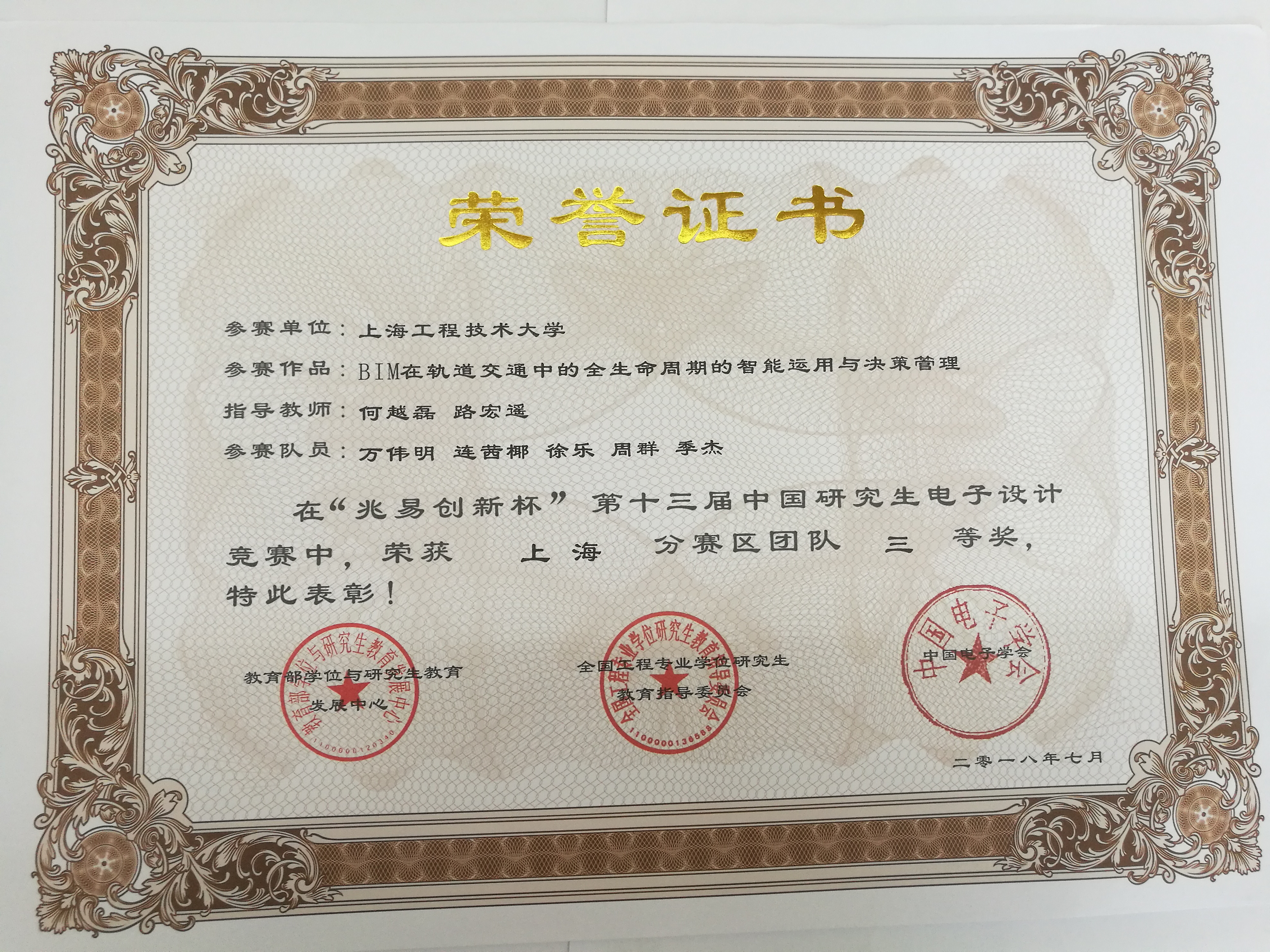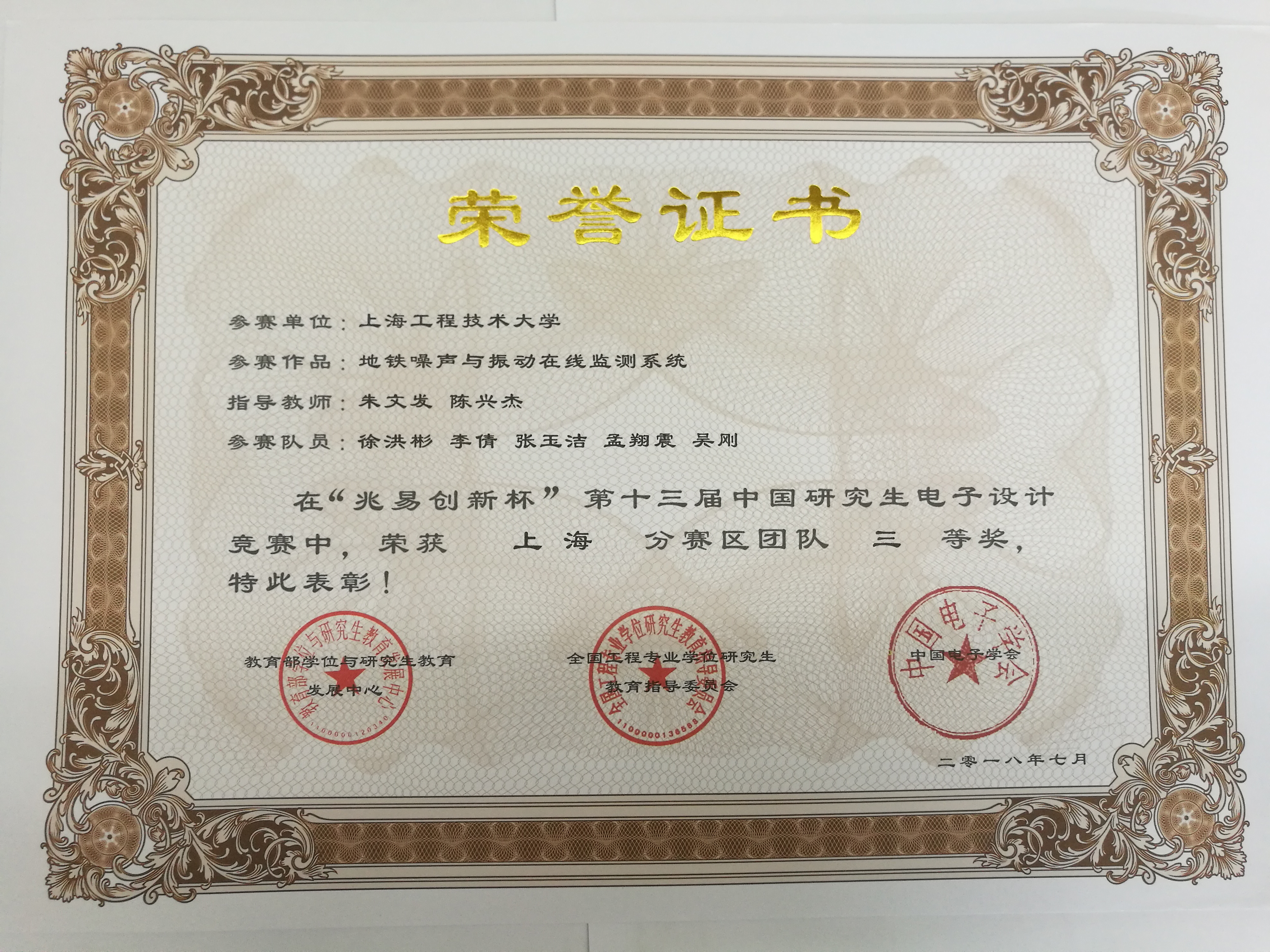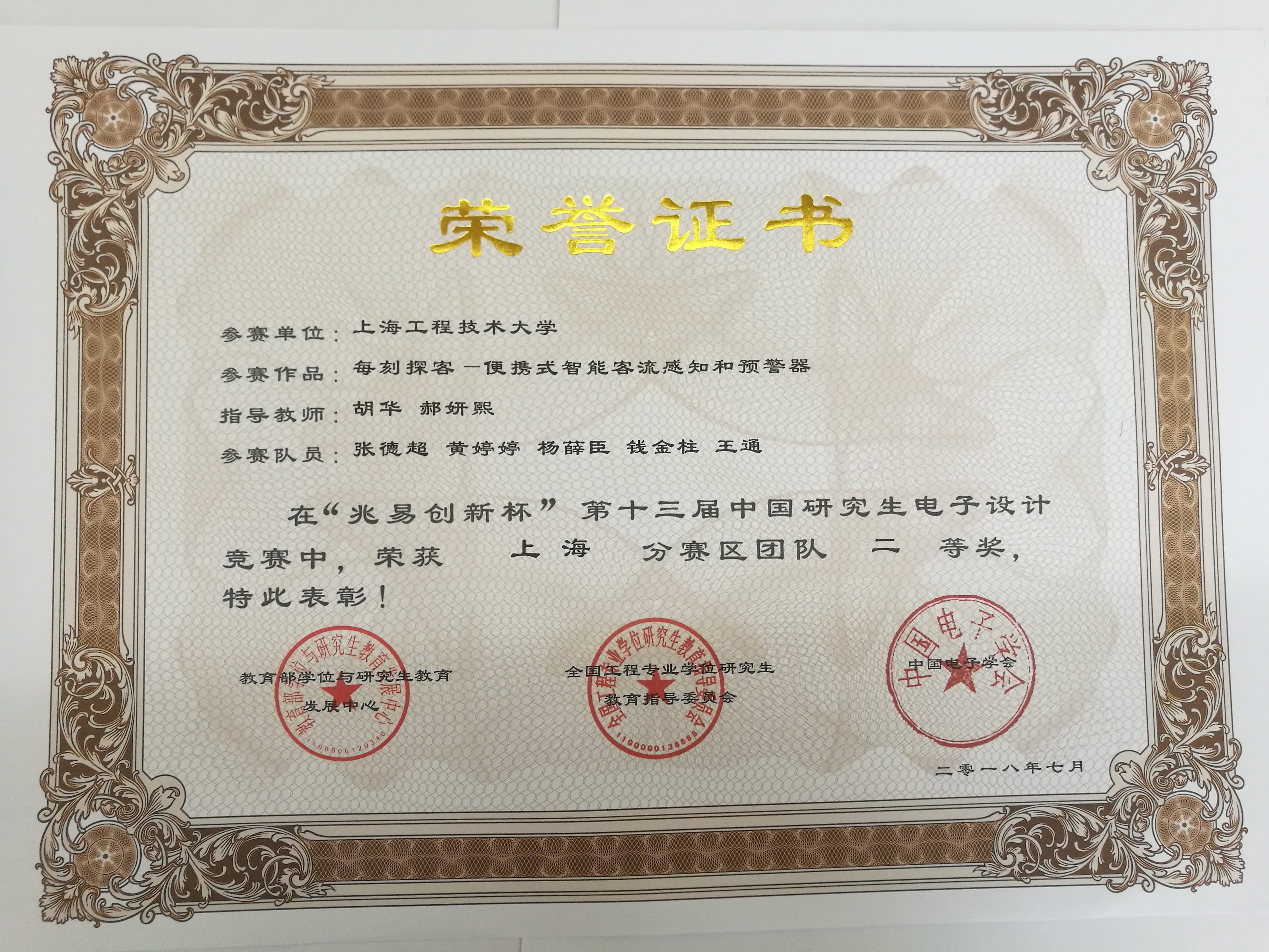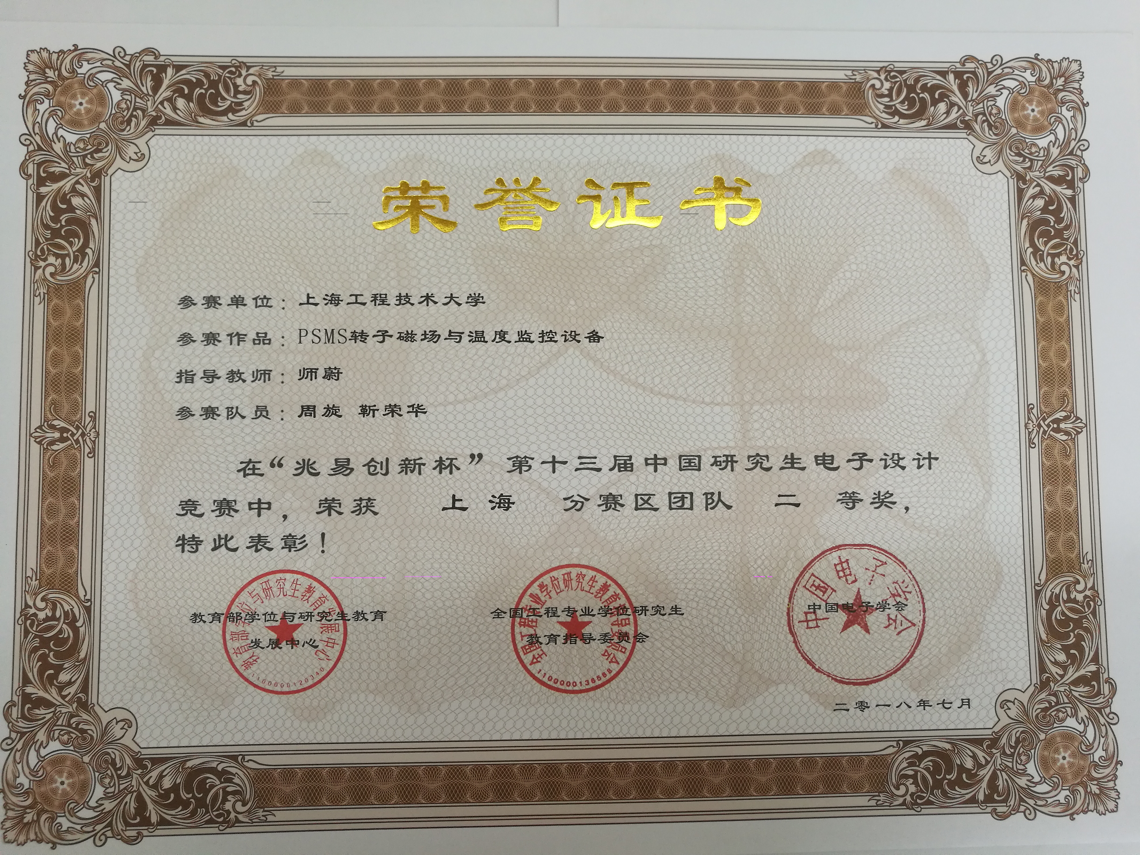 公司研究生在2018年“兆易创新杯”第十三届中国研究生电子设计大赛上海赛区中获二等奖4项,三等奖2项的好成绩!