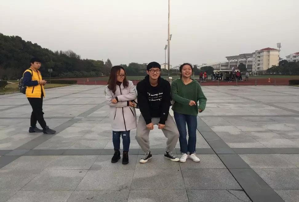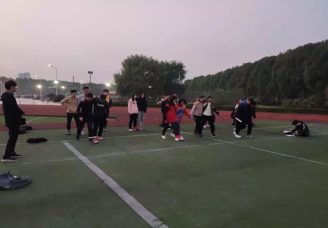 比赛过程中,三个同学需要两两腰部之间各夹一个排球,如此喜感的造型怎能不令人期待呢(搓搓手)最终,来自运营二班的两个妹子和一个男孩子获得了本场比赛的冠军,恭喜恭喜(撒花)!!!