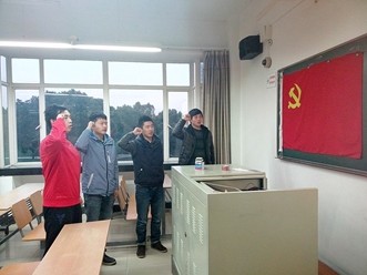 首先进行的第一项议程是关于李晓敏和周畅同志被组织批为成为预备党员的入党宣誓。在一番自我阐述之后,与栾富日、徐昊峰、张昀三位预备党员一同面对党旗庄严宣誓。