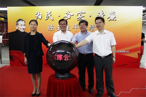 习近平总书记在上海考察时提出,要让社会主义核心价值观真正被民众普遍接受、理解和践行,则必须使核心价值观与民众的日常生活对接,成为民众日常的生活价值理念和行为规范。为此,陈云纪念馆和共建单位永利集团携手上海申通地铁有限公司、上海地铁第一运营有限公司,6月18日上午,在9号线老员工自管线徐家汇换乘大厅举办了《为民、务实、清廉--陈云生平业绩展》进地铁启动仪式。陈云纪念馆馆长徐建平、上海申通地铁集团有限公司党委副书记徐建群、公司党委副书记裴小倩、市委党史研究室、市文明办活动指导处、市委宣传部宣传处等领导出席了启动仪式。