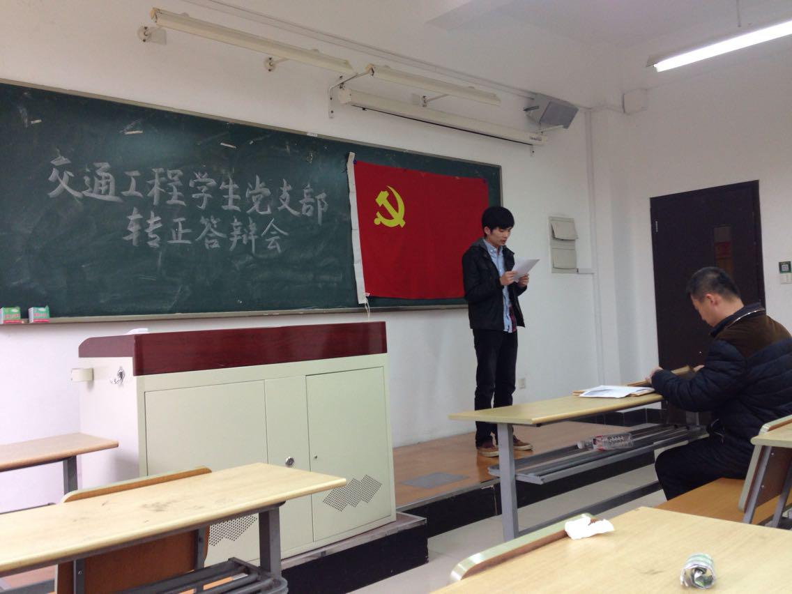 交通工程员工党支部于4月16日,在C109教室召开预备党员转正大会。本次大会主要讨论了丁嘉雨和沈航渊2位同学的转正申请,交通工程员工党支部全体党员和部分积极分子代表参加了会议,大会由党支部书记刘景军老师主持。