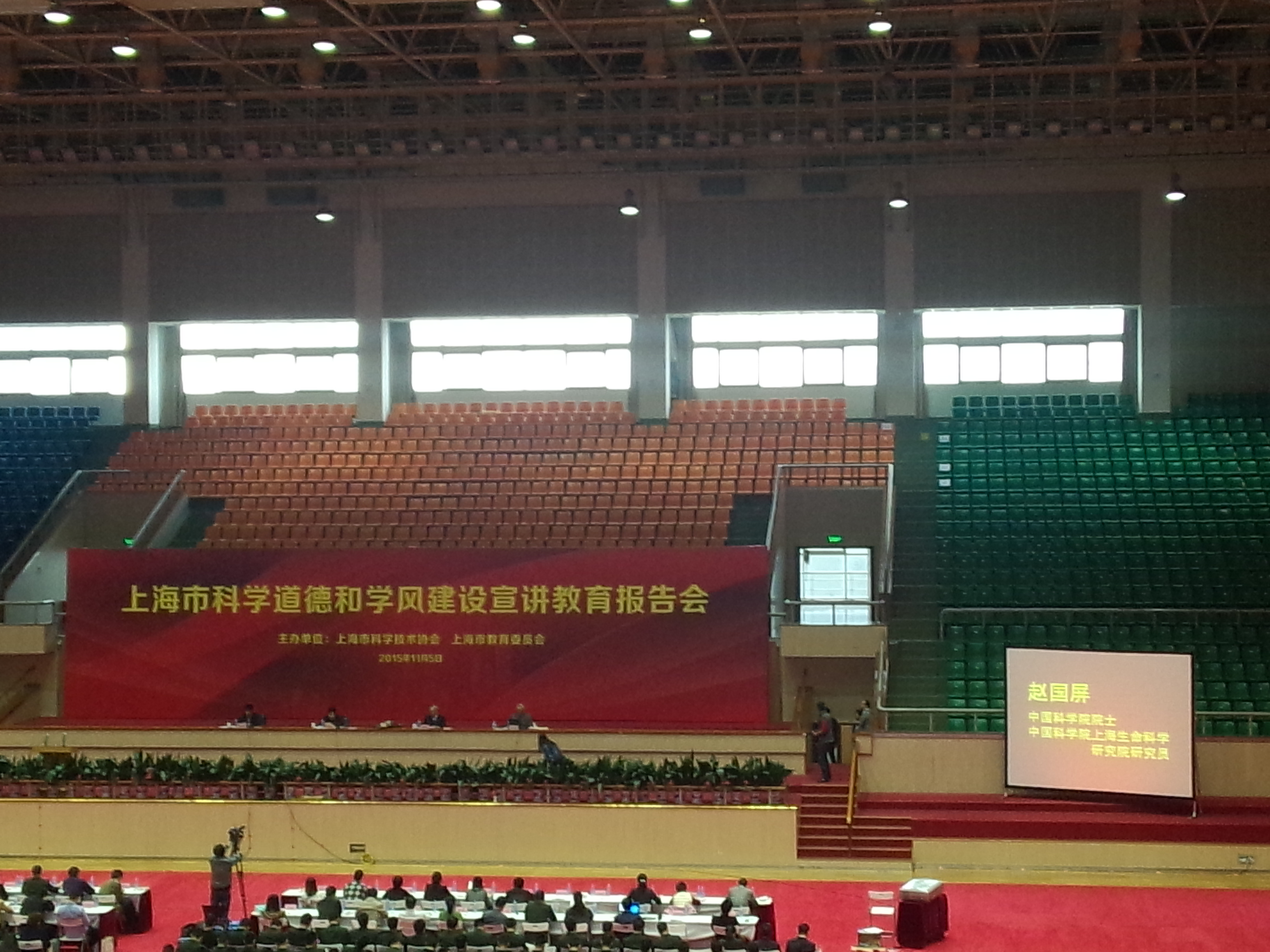 11月5日下午,由上海市科协和上海市教委联合主办的2015年上海市科学道德和学风建设宣讲报告会在上海大学体育馆举行,孙晋良,赵国屏两位院士分别作了报告。公司7名研究生代表与来自其他高校3000多名研究生及青年老师聆听了专题报告。