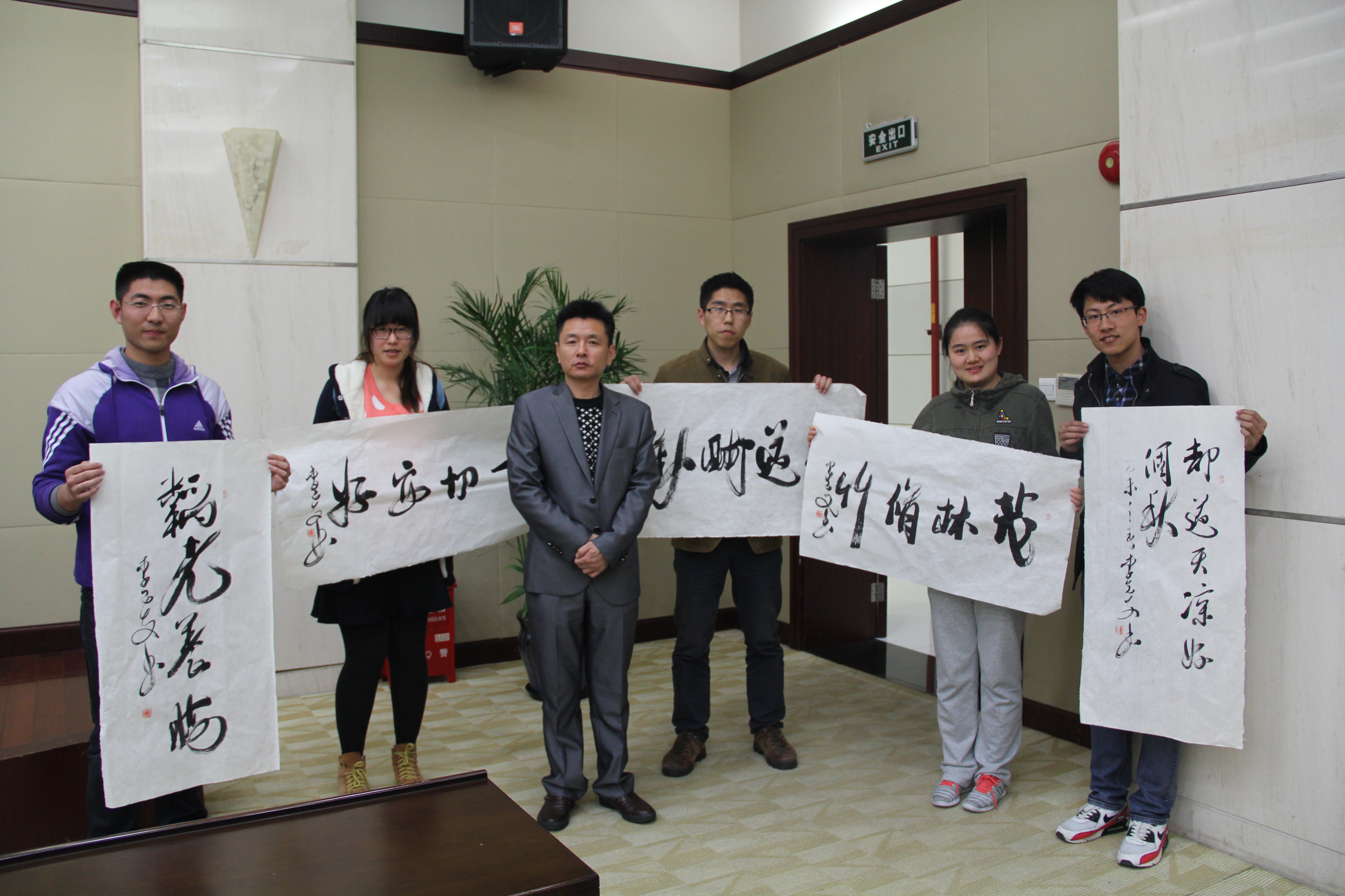 李老师以书法之道引题,提出了“道”的概念及含义,从书法的历史起源讲到字体的演变。李老师持着对书法的尊重和热爱,用幽默风趣的语言为大家介绍了书法中所用到的毛笔,并演示了正确的握笔姿势。为了让同学们切身体会到传统的书法,并现场题字赠与同学们,李老师手持毛笔,刚柔并济,字体苍劲有力,博得了大家阵阵的掌声。