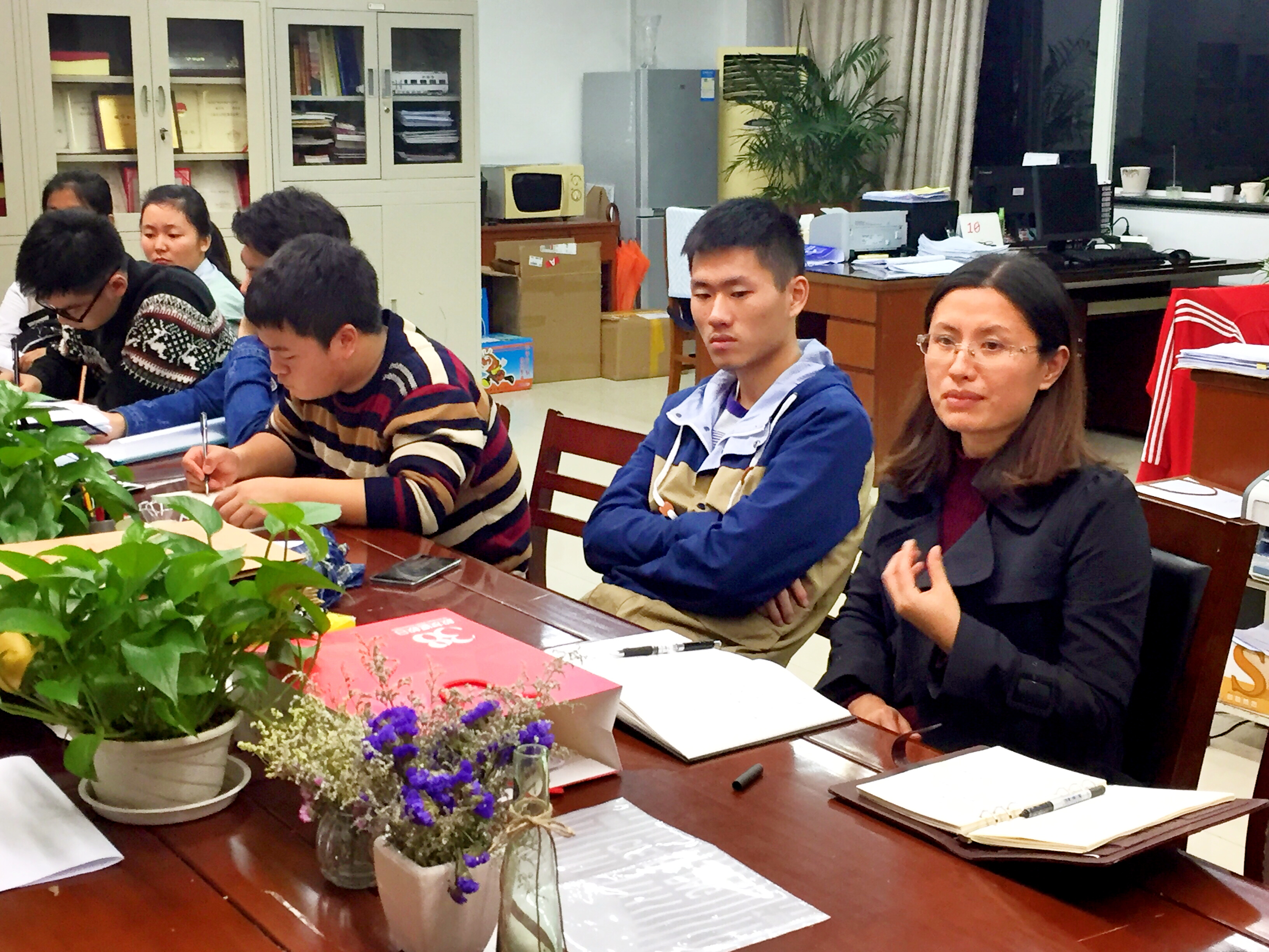 会议伊始,万慧琳老师就“如何度过美好充实的老员工活”作为开场白,认真听取了大一新生代表进入大学学习以来在学习生活、社会实践等方面存在的问题和想法,同时也对如何加强公司的学风建设和员工工作管理听取了同学们的建议。随后,同学们纷纷提出了自己或者班级上存在的学风问题与困惑,其中包括上课低头玩手机现象、少数同学玩游戏时间较多、部分文科性课程听课的积极性不高等问题。针对上述问题,万慧琳老师一一进行了回应。并对员工干部提出了期望和要求,她认为员工干部作为员工骨干力量,须积极起到模范带头作用,以点带面,共同营造一个良好的学习氛围。