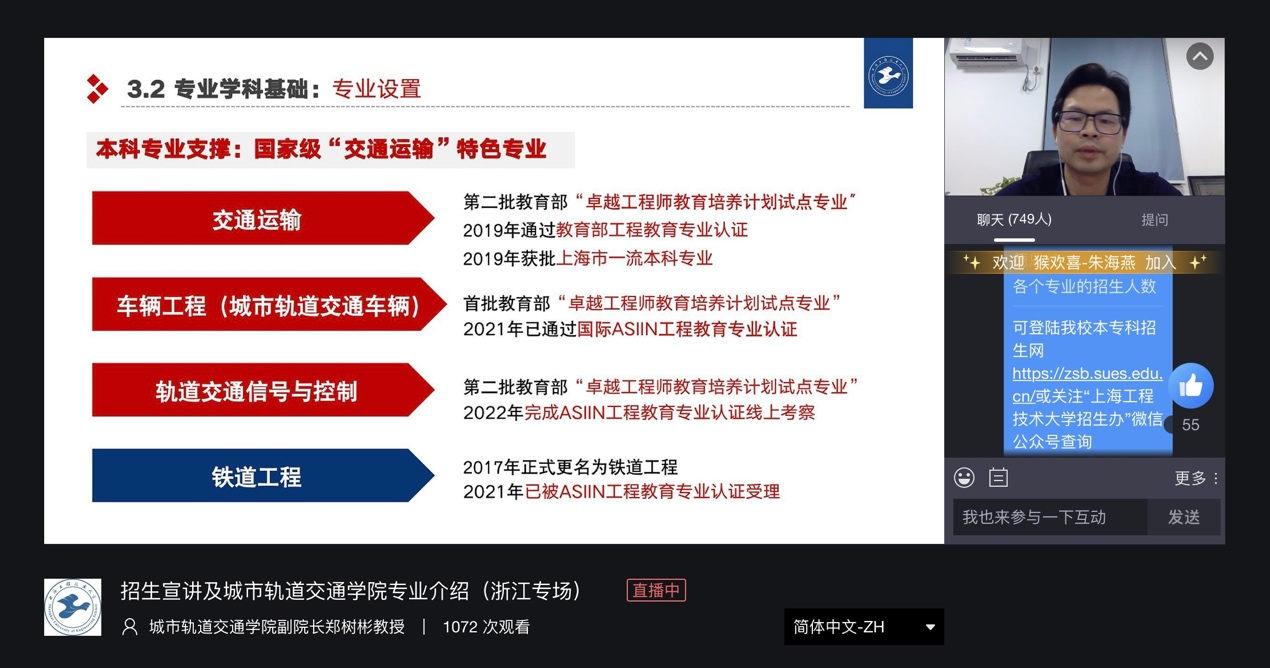 郑老师强调,我国城市轨道交通高速发展,对于交通类人才的需求非常大,3044永利集团致力于构建企校融合发展共同体,为轨道交通事业的新发展,面向城轨智慧运维产业需求,联合培养大批量的专业技术和管理人才。通过本次“云宣讲”“云服务”,让考生和家长们全面、深入地了解了公司的发展历程和专业及学科特色优势,进一步提升了社会对公司公司办学理念、模式及人才培养成效的认识。