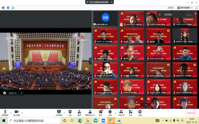 开幕式后,公司各党支部分别组织了线上座谈会。大家围绕习近平总书记在报告中指出的“开辟马克思主义中国化时代化新境界”、“新时代新征程中国共产党的使命任务”、“新时代新征程中国共产党的使命任务”等内容进行了积极的讨论,发言十分踊跃。全院师生纷纷表示,要深刻认识和把握大会报告的精神实质和丰富内涵,认真贯彻落实好大会报告提出的各项任务,第一时间迅速把思想和行动统一到党的二十大精神上来。