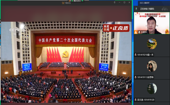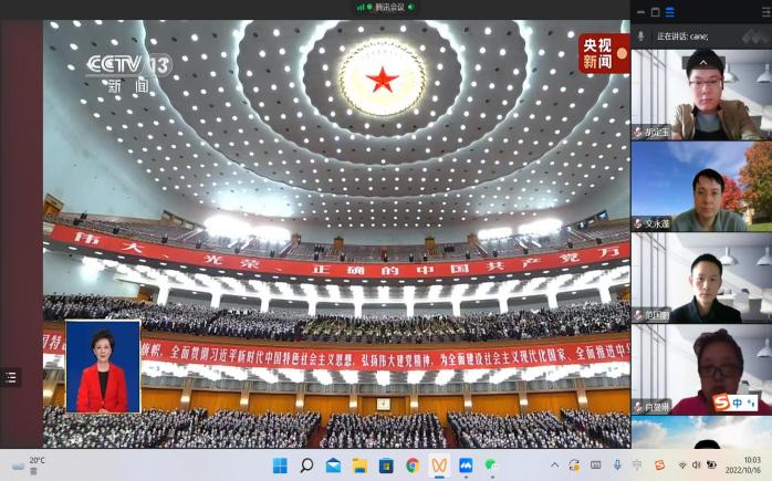 10月16日,中国共产党第二十次全国代表大会在北京隆重召开,公司党委组织全院师生积极收听收看大会盛况,学习领会党的二十大精神。上午10时,公司党委中心组成员在现代交通工程中心8A515室、各支部党员和民主党派教师通过线上腾讯会议方式共同观看了开幕会直播。