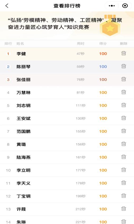 日前,公司党委特举办“弘扬'劳模精神、劳动精神、工匠精神'、凝聚奋进力量匠心筑梦育人”知识竞赛,公司教职工积极参与。“功崇惟志,业广惟勤”,习近平总书记指出,劳动是财富的源泉,也是幸福的源泉。人世间的美好梦想,只有通过诚实劳动才能实现;发展中的各种难题,只有通过诚实劳动才能破解;生命里的一切辉煌,只有通过诚实劳动才能铸就。学习劳模事迹,致敬交通运输事业奋斗者!网络答题活动虽已告一段落,但自觉向劳模看齐、向先进赶超的热情还在延续,公司的广大教师正在行动起来,在前进的道路上将“劳动精神、劳模精神、工匠精神”发扬光大,为祖国培养更多轨道交通专业人才。