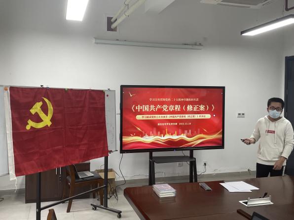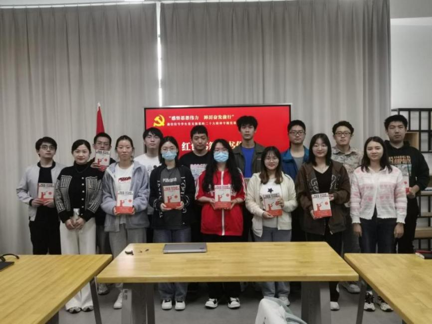 对党的二十大学习贯彻不仅要体现在支部的“三会一课”上,更要潜移默化地渗透到日常生活中。支部精心挑选并准备了一系列红色书籍,教师党员梅文静、裴杨从琪共同为支部的员工党员、发展对象与入党积极分子授书。二位老师鼓励同学们,要加强理论学习、厚实理论功底,在“真学”上下功夫,在新时代新征程上留下无悔的奋斗足迹。