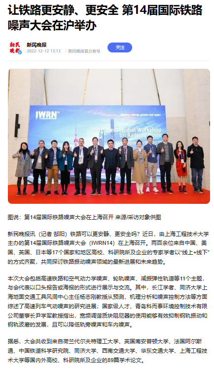三是聚焦科研创新,充分发挥高层次人才在科学研究上的引领作用、党员学术骨干核心作用、青年人才的支撑作用,公司获批国家自然基金项目4项。成功举办第十四届国际铁路噪声大会,获新民晚报、上海教育电视台等6家媒体广泛报道。
