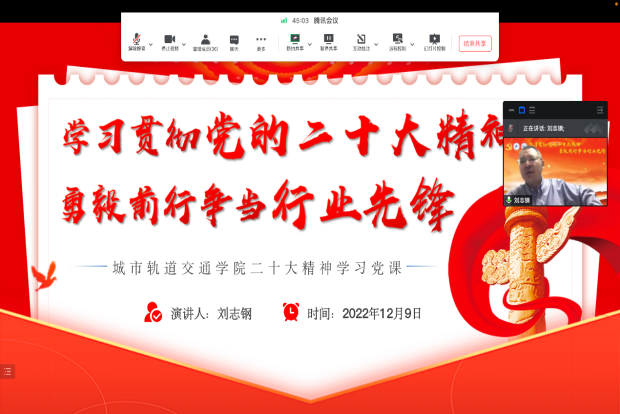 四是全院师生覆盖学。面向全体师生党员,通过“三会一课”“主题党日”等形式开展集中学习、研讨交流、红色寻访,强化党员政治意识;面向全院教师,集中开展教职工政治理论学习,邀请校讲师团成员及校外专家作专题辅导报告,拓宽教师理论视野;面向全院员工,以党建带团建,举办“同心共迎二十大,乘轨领航新征程”主题演讲比赛,推出微信特色栏目“青年之声”--学习党的二十大,自主开发打造“领航”微信小程序平台等,激发员工学习热情。