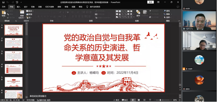 四是全院师生覆盖学。面向全体师生党员,通过“三会一课”“主题党日”等形式开展集中学习、研讨交流、红色寻访,强化党员政治意识;面向全院教师,集中开展教职工政治理论学习,邀请校讲师团成员及校外专家作专题辅导报告,拓宽教师理论视野;面向全院员工,以党建带团建,举办“同心共迎二十大,乘轨领航新征程”主题演讲比赛,推出微信特色栏目“青年之声”--学习党的二十大,自主开发打造“领航”微信小程序平台等,激发员工学习热情。