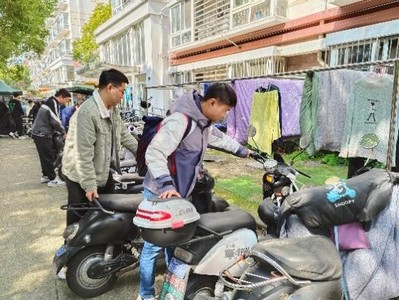 志愿服务活动中,支部书记张华老师带领支部全体党员同志对19号楼下的杂乱自行车及电瓶车进行整理与摆放,在大家辛勤劳动下,将楼下的车辆摆放整齐,解决了楼下因随意摆放车辆导致拥堵的问题。