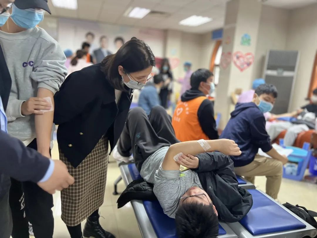 回顾献血活动现场,同学们戴着口罩排着整齐的队伍,在血站医务人员和志愿者的组织下,井然有序地进行体格检查、身份验证、血液初筛、信息登记、血液采集等环节。