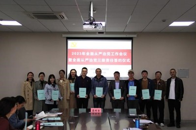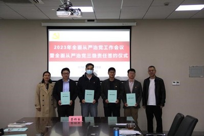 为进一步贯彻落实公司党委关于全面从严治党的工作部署要求,切实扛起全面从严治党主体责任,层层压实责任,将全面从严治党向纵深推进。4月25日上午,公司党委举行2023年全面从严治党工作会议暨全面从严治党三级责任签约仪式,公司全体党委委员、党政领导班子、各系室主任、各党支部书记参加会议。会议由公司党委书记万慧琳主持。