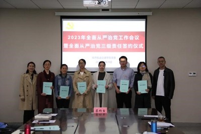 为进一步贯彻落实公司党委关于全面从严治党的工作部署要求,切实扛起全面从严治党主体责任,层层压实责任,将全面从严治党向纵深推进。4月25日上午,公司党委举行2023年全面从严治党工作会议暨全面从严治党三级责任签约仪式,公司全体党委委员、党政领导班子、各系室主任、各党支部书记参加会议。会议由公司党委书记万慧琳主持。