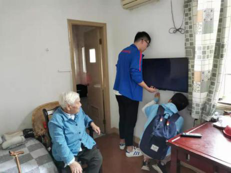在接下来的两个小时里,我们在力所能及的范围内帮助老人们做了一些小事情。季浩麟和徐佳宜同学充分发挥了作为工科生的专业优势,帮助敬老院将几台信号不良的电视机调试正常。几位细心的女同学在看到天气转阴时主动帮助老人们将晾晒在外的衣物收了进来。
